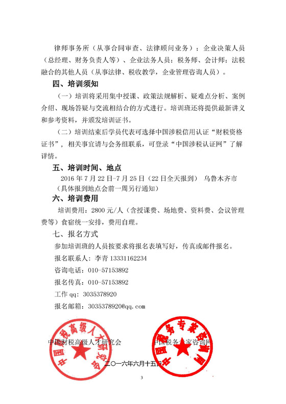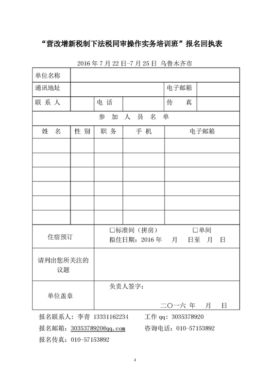 关于举办“营改增新税制下法税同审操作实务”培训班的通知